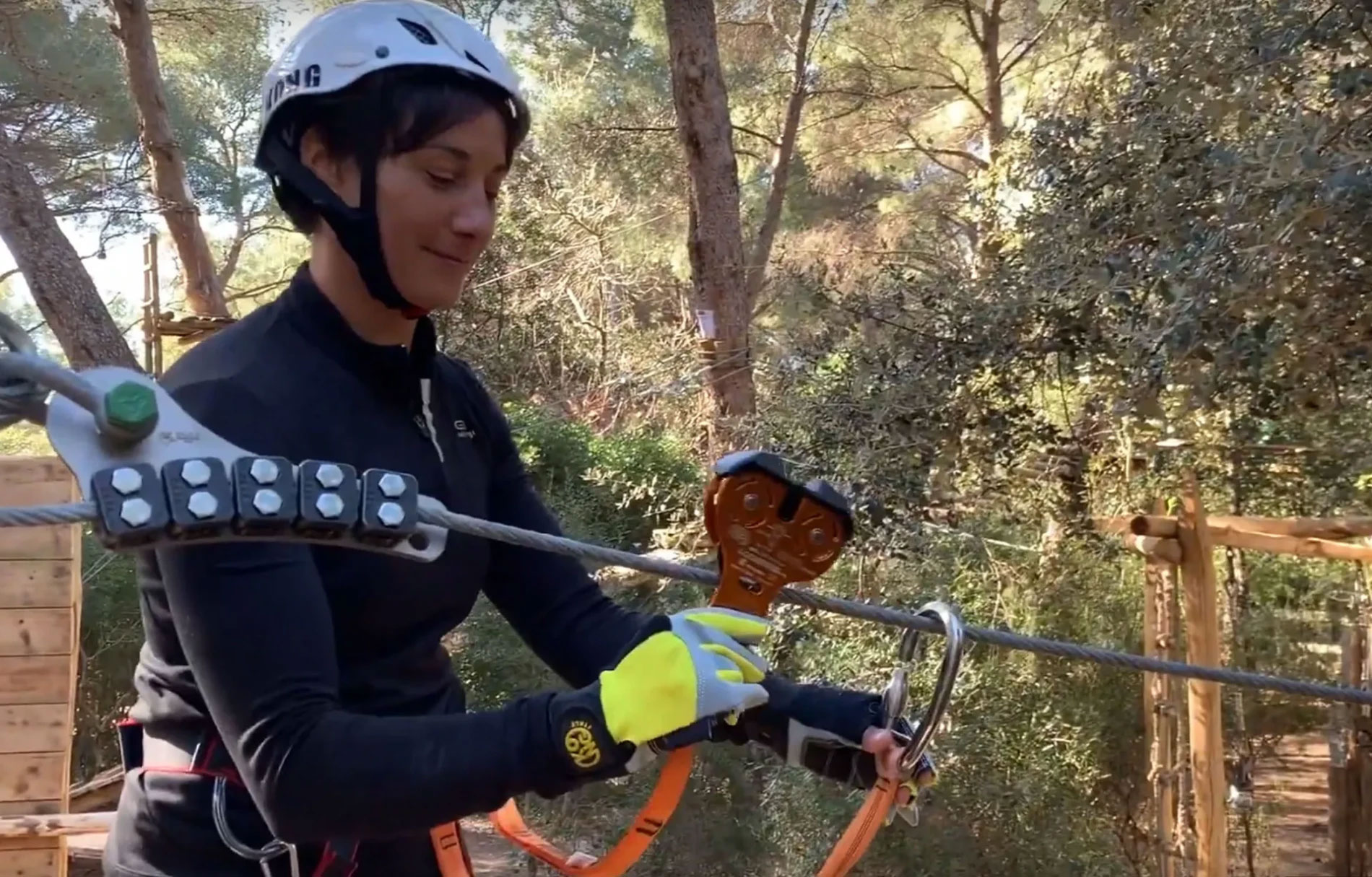 Mit unserem zertifizierten Coudou Pro-Sicherungssystem seid Ihr stets mit einem Sicherungs-Stahlseil verbunden. Mit dem System klingt ihr Euch bereits am Boden ein und bleibt so lange an einem Stahlseil gesichert, bis Ihr wieder save am Boden seid. Insbesondere ein „Umhängen“ oder Aus- und Einsichern ist nicht notwendig. Fehler oder Gefahren beim Ein- oder Aussichern auf den Plattformen beim Wechsel von Element zu Element – wie bei herkömmlichen Karabinern – sind so technisch ausgeschlossen.